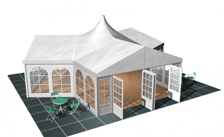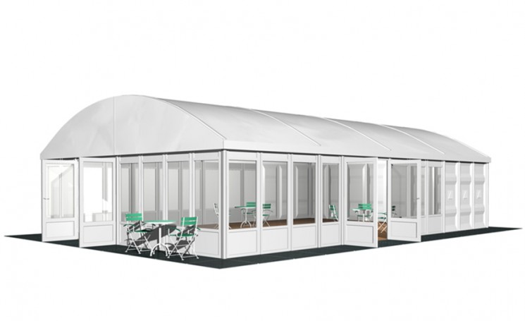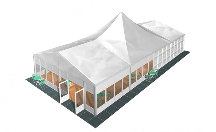 篷房主要有三大部分,鋁合金框架、連接鋼部件、各種材質的頂篷及墻體。其中鋁合金與連接部件組成的框