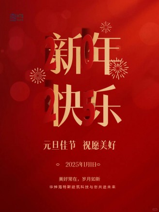 大家好!隨著2024年的即將結束,我們即將迎來充滿希望和機遇的2025年。值此辭舊迎新之際,華燁海特斯建筑科技(江蘇)有限公司全體員工向您致以最誠摯的問候和美好的祝福! 根據國家法定節假日安排,結合公司實際情況...