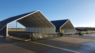 11月12日,第十五屆中國國際航空航天博覽會在珠海開幕。當一架架飛機在上空盤旋,也想就地“落腳”,一座裝配式機庫篷房是它“落腳點”的不二之選。一個相對簡單的機庫也需要數年的時間來建造。裝配式機庫篷房或許提供了一個快速有效的替代方案,只要平整的地面即可操作。
