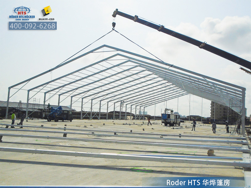 一般像5-40米的跨度都是比較合適的規格,而長度則按實際場地的需求選擇,邊高上常規是4米邊高,基本可以滿足普通活動的正常使用,當然如果有特殊情況需要更高的邊高,德國華燁篷房也可以提供8-10米邊高的移動篷房!?