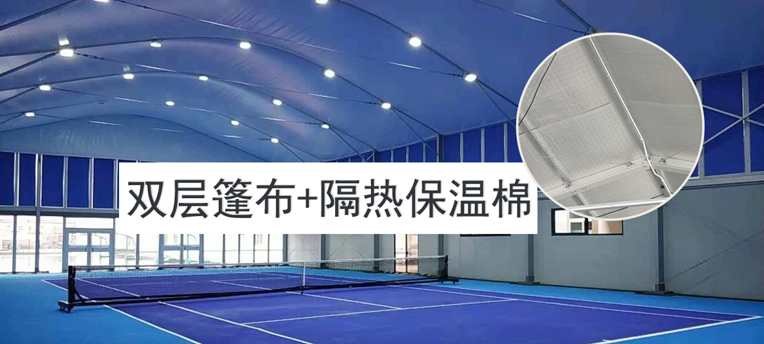 雙層充氣(熱充氣)頂篷,利用空氣隔絕熱量流失,特別是在沖入加熱后的空氣,保溫效果很好, 抗雪,是一種高端的頂篷設計,無論是制造成本還是維護成本都相對偏高,但對于極寒地帶達到的 保溫效果是很好的。