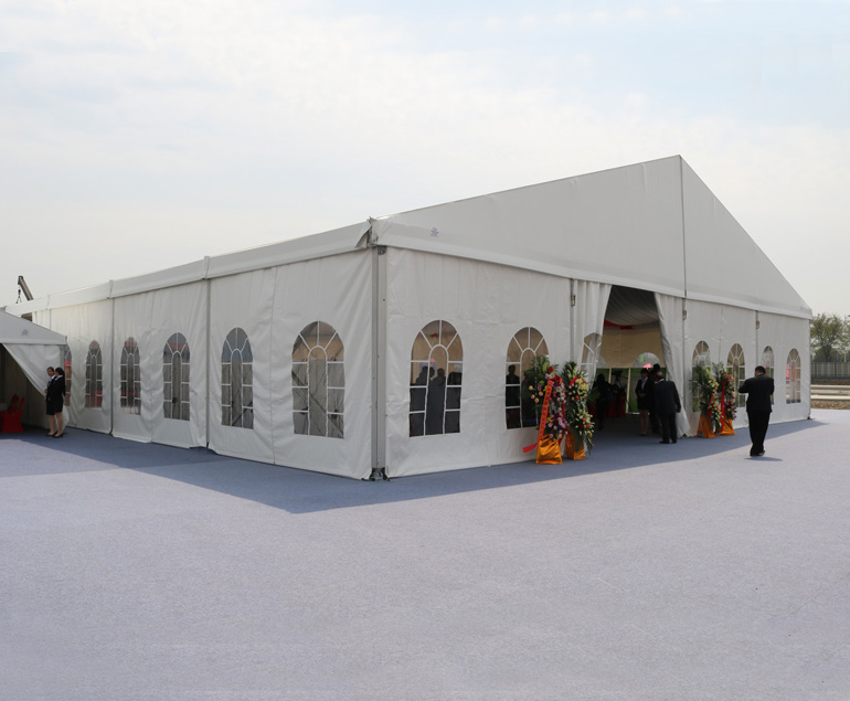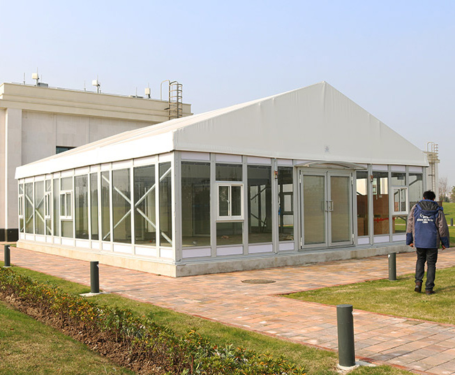 篷房主體分為框架、頂篷以及四周邊墻,邊墻事獨立的,你可以選擇它的材質(zhì),也可以選擇要不要安裝邊墻,它主要起到圍擋的作用,不同用途下需要 選擇不同的邊墻材質(zhì),常見的邊墻材質(zhì)有:PVC篷布、玻璃、ABS板、巖棉夾芯板、單層彩鋼板等。